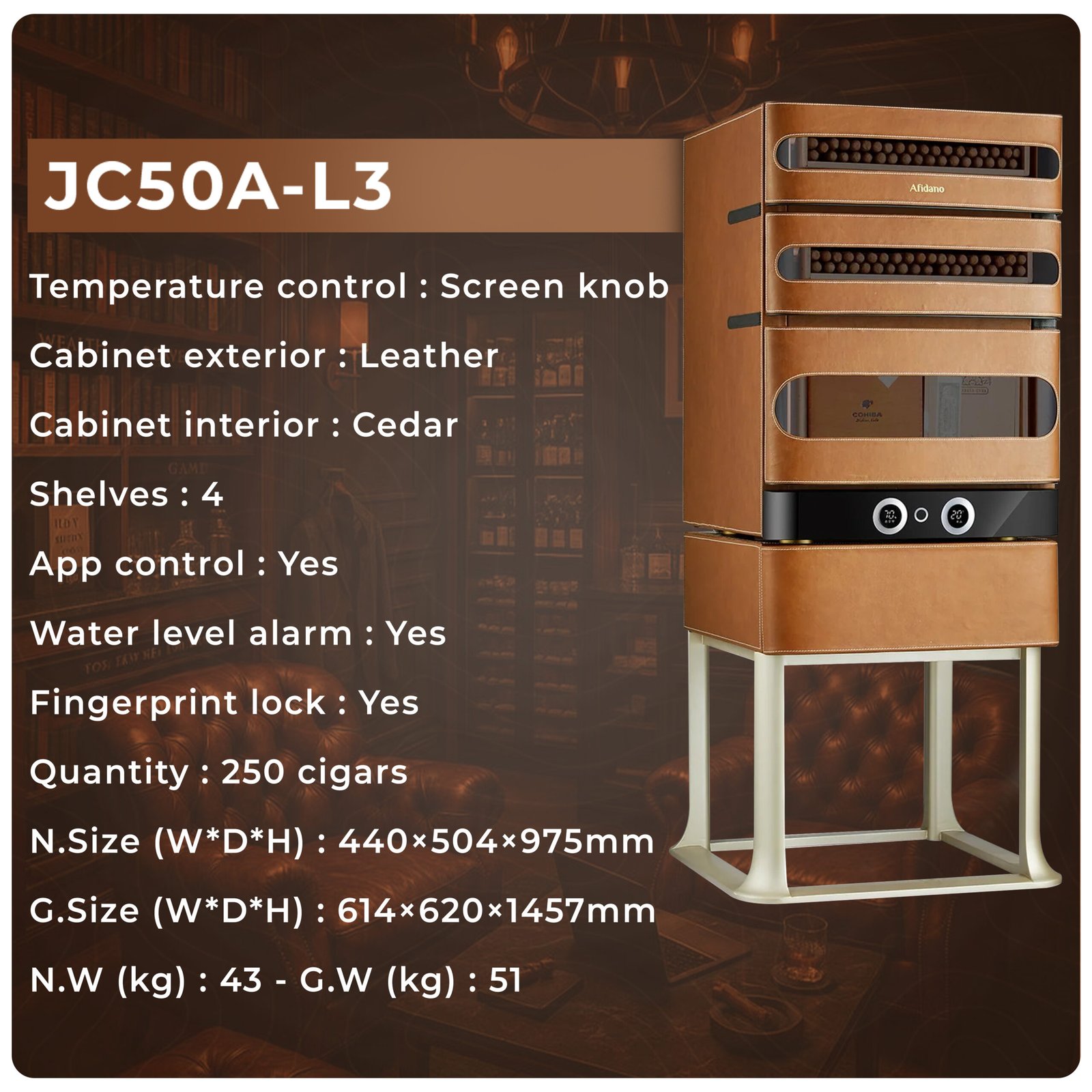 The Afidano L3 Electric Cigar Humidor is designed for serious collectors who demand precision, capacity, and luxury. Built to store up to 250 cigars, this premium cabinet provides advanced temperature control and optimal humidity stability — ensuring your collection remains perfectly preserved in the UAE climate.