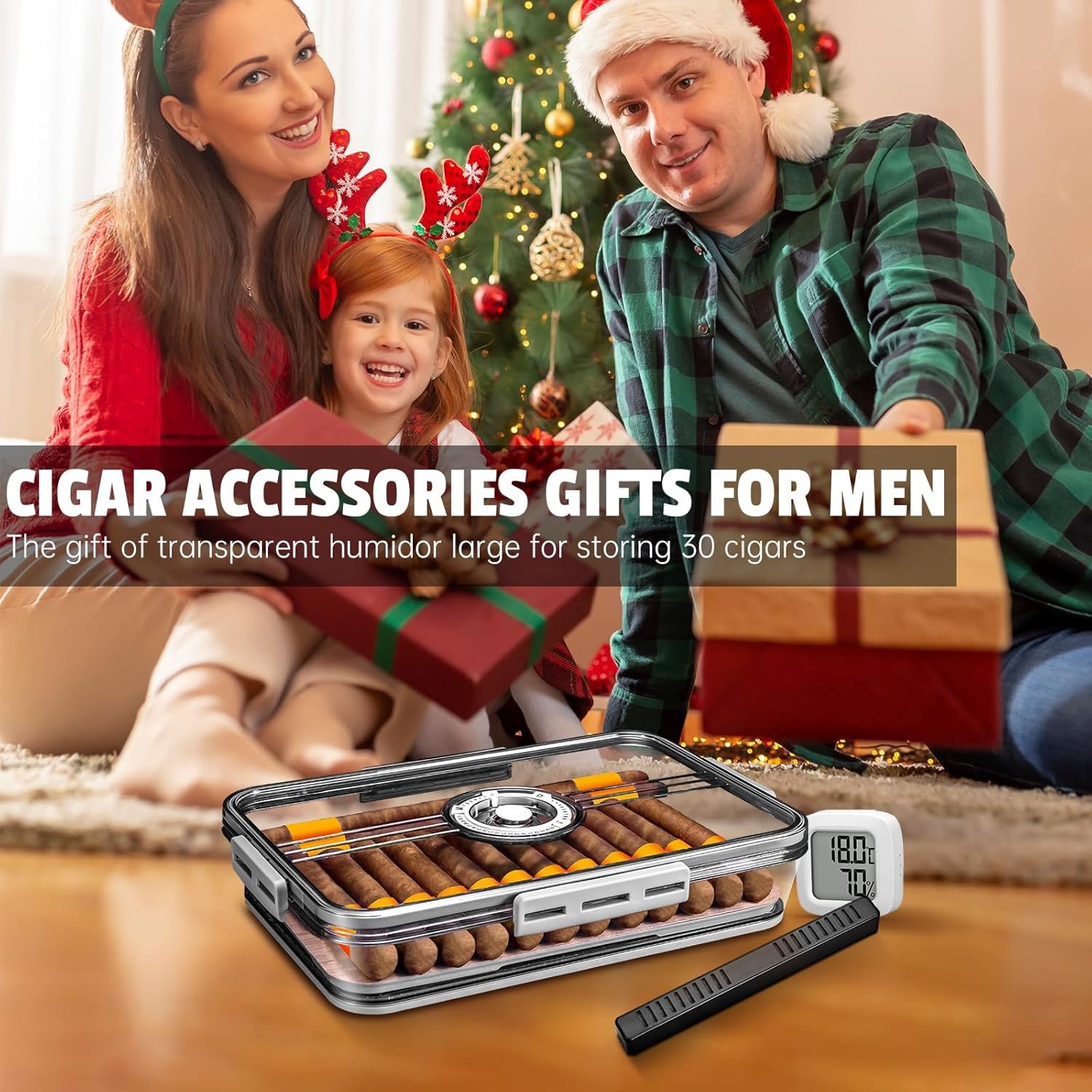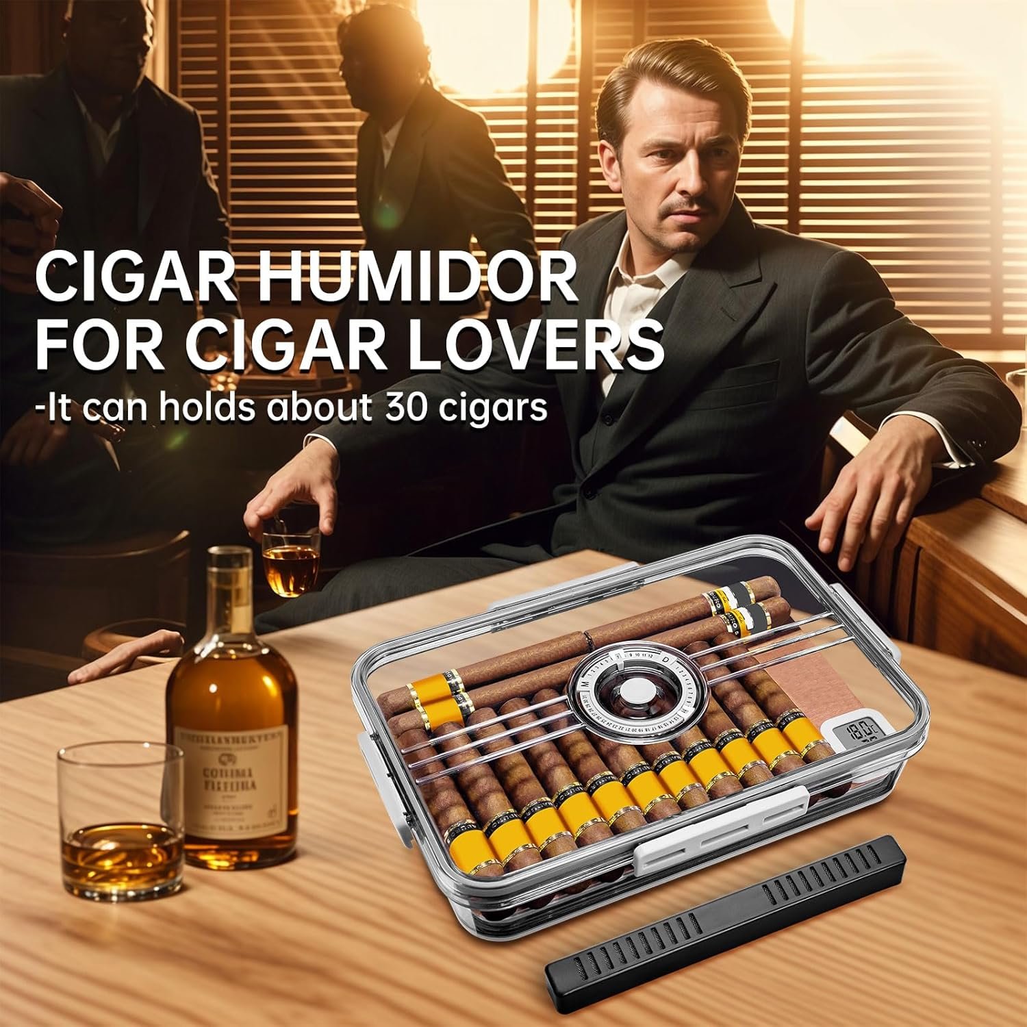 CIGARLOONG Clear Humidor: 30-Cigar Storage Box with Humidifier & Hygrometer