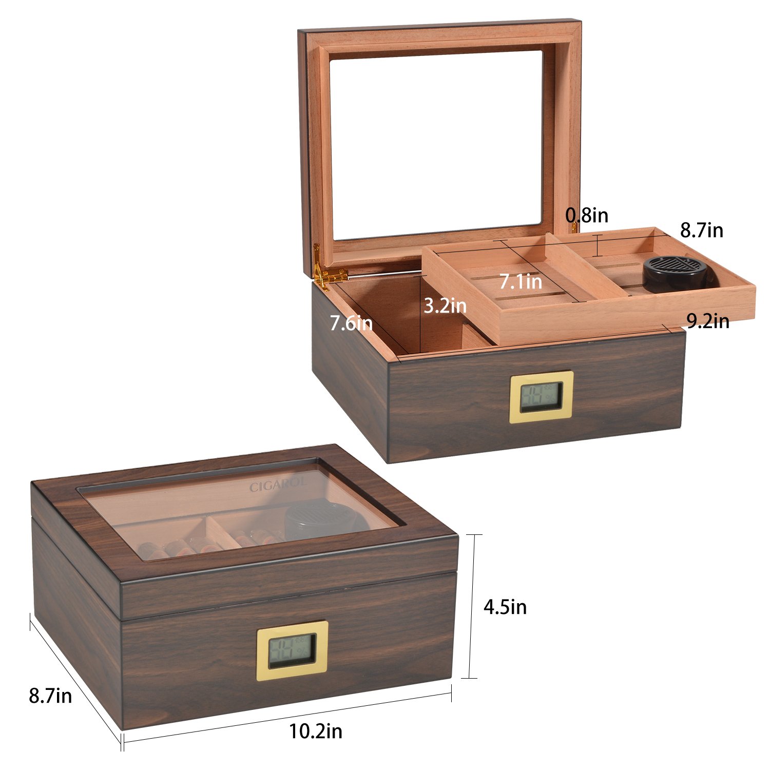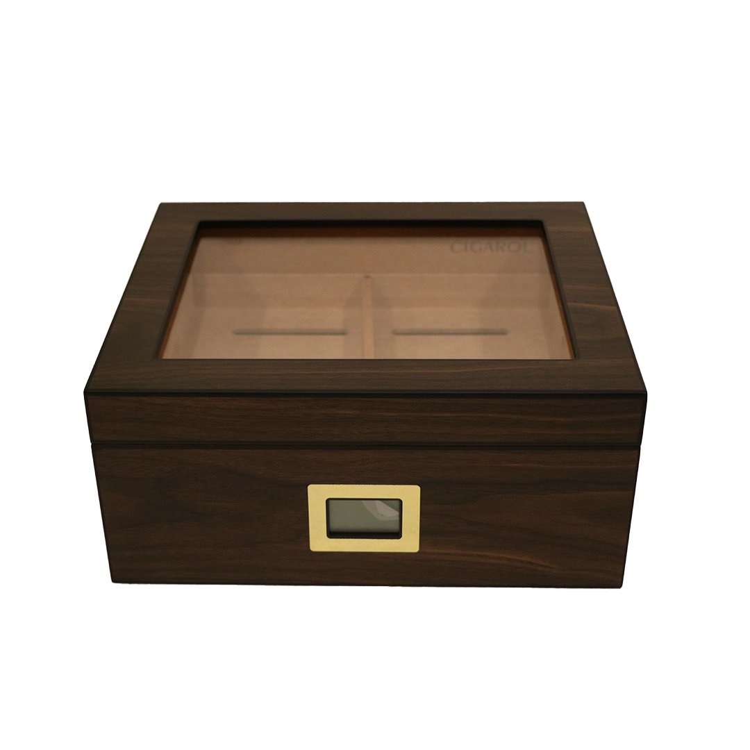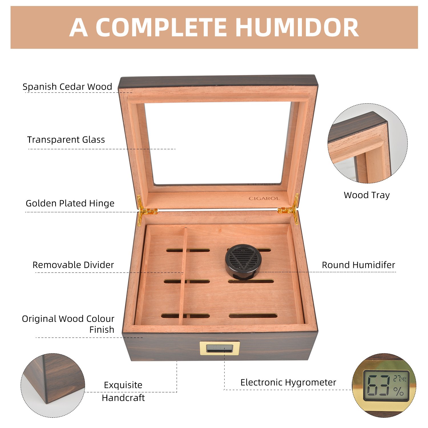 CIGAROL Glass Top Cigar Humidor | Digital Hygrometer & Spanish Cedar Tray