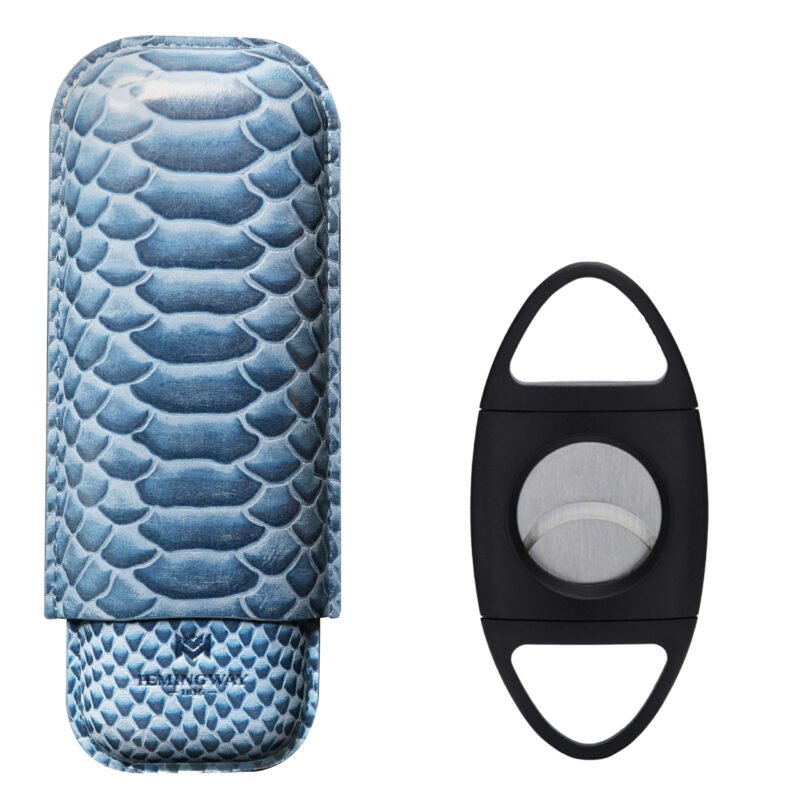 HEMINGWAY METAL CIGAR CASE WITH TIGHT SEAL – HOLDS UP TO 2 CIGARS – Blue