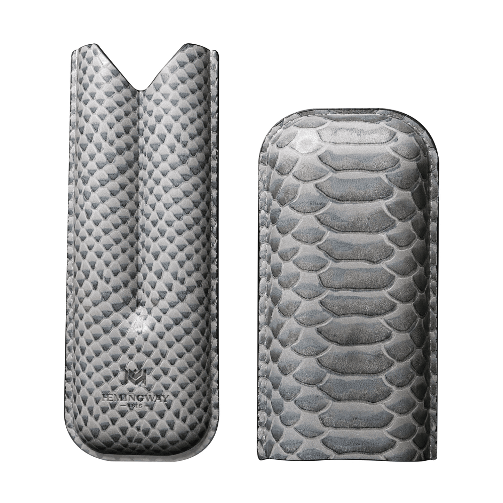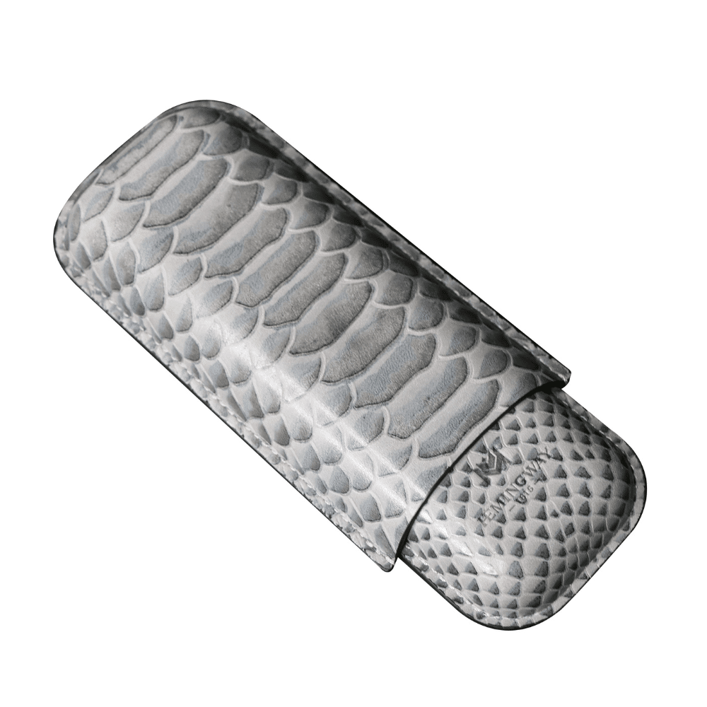 Hemingway Premium leather Cigar Case 2 Cigars Holder Snake Print Cigar Case Grey