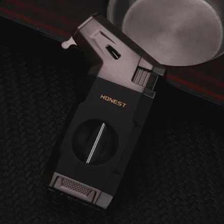 Honest Cigar Lighter Windproof Single Jet Flame Butane Refillable Torch Lighter Black