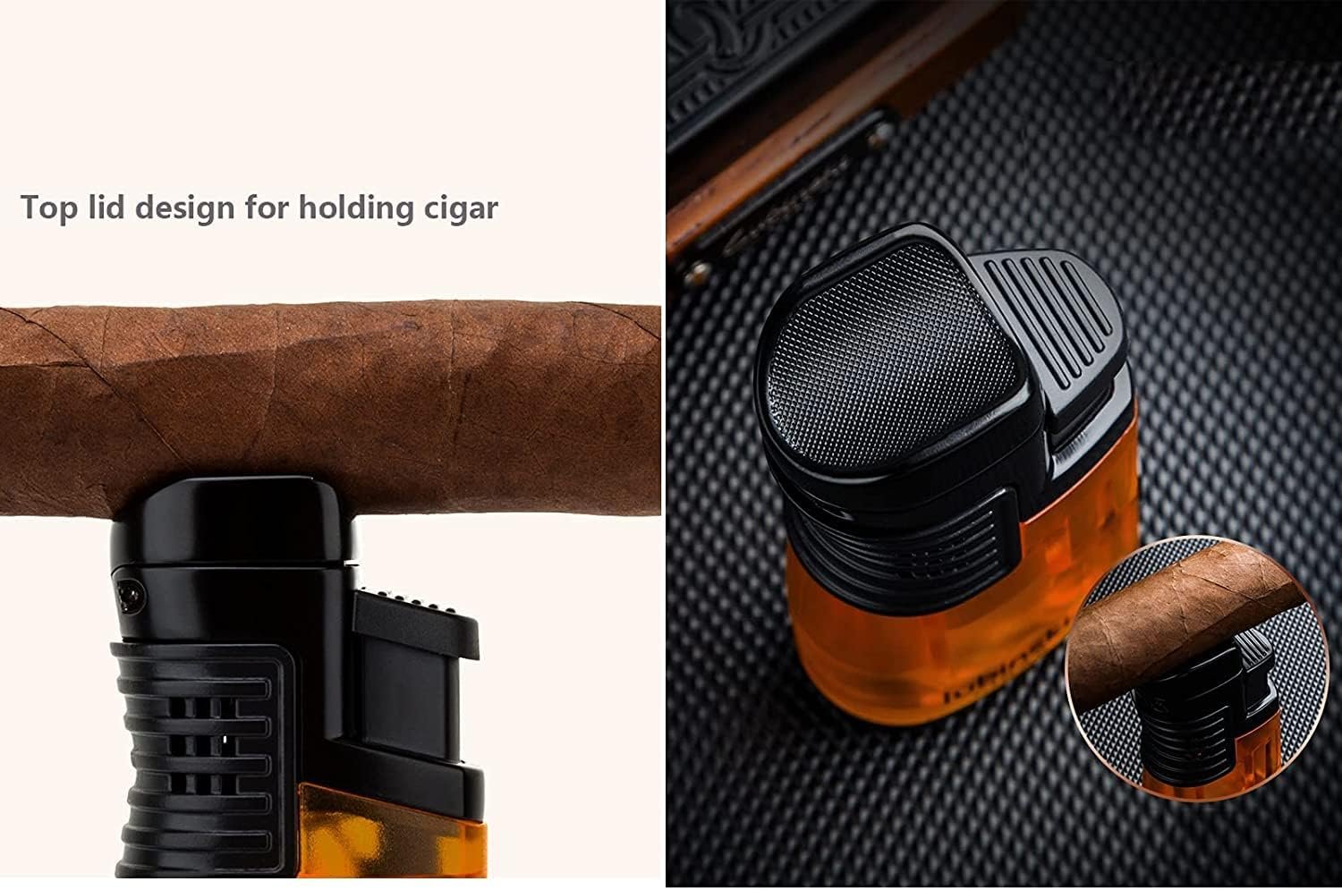 - Multi-functional 3 Torch Lighter and Cigar Cutter: Multi-functional Windproof 3 Jet Torch Lighter with punch, the lighter top lid can be used as cigar holder, Transparent body, you can always observe the gas usage. Multi-functional Lubinski Cigar Cutter can cut cigar and hold cigar.