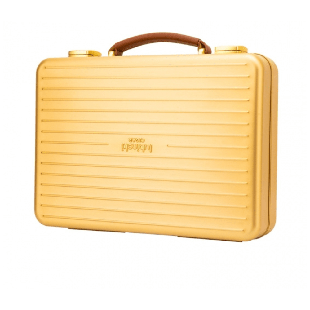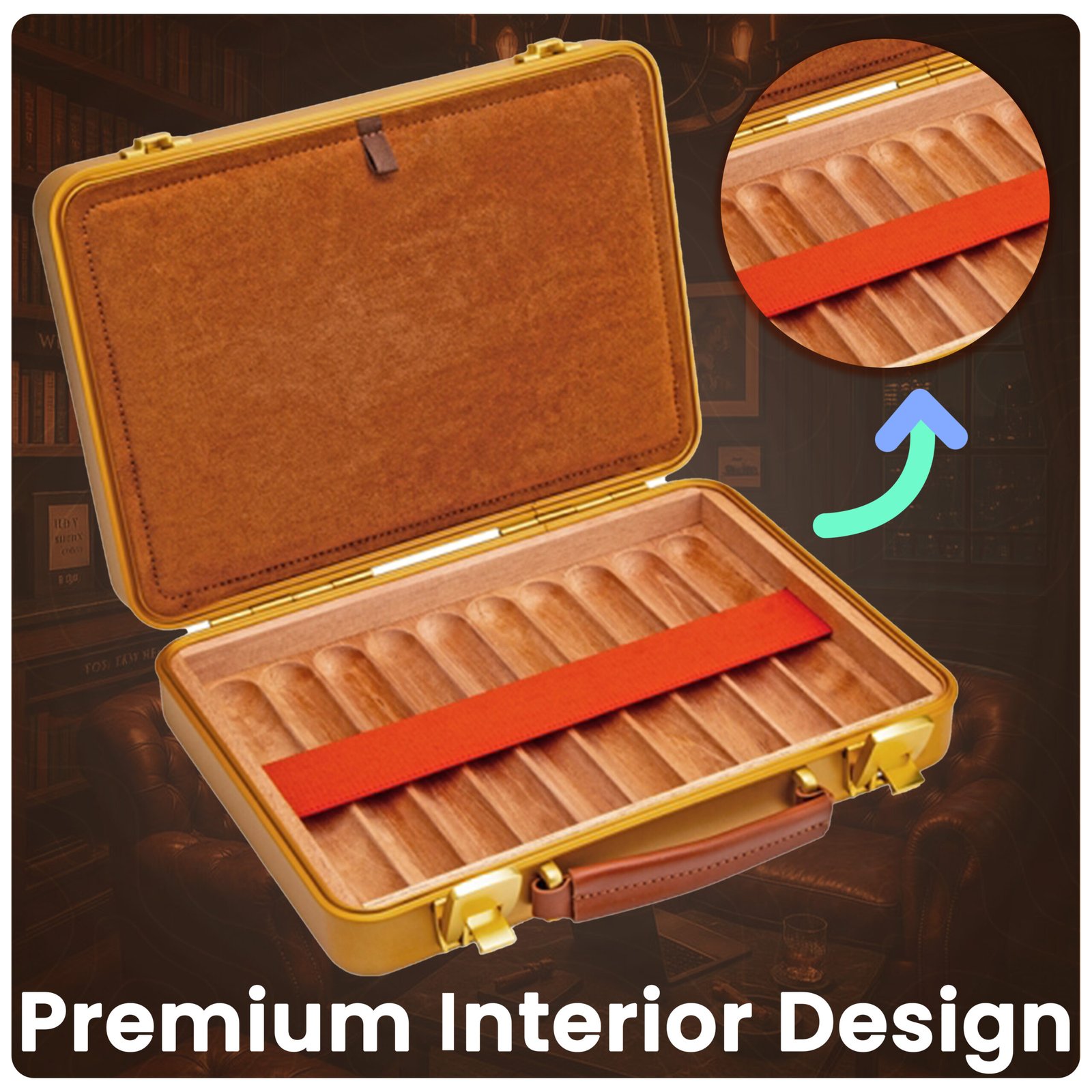 Lubinski Luxury Aluminium Alloy Cigar Humidor Portable Cigar Storage Box Cedar Wood Interior Holds 20 Cigars Gold