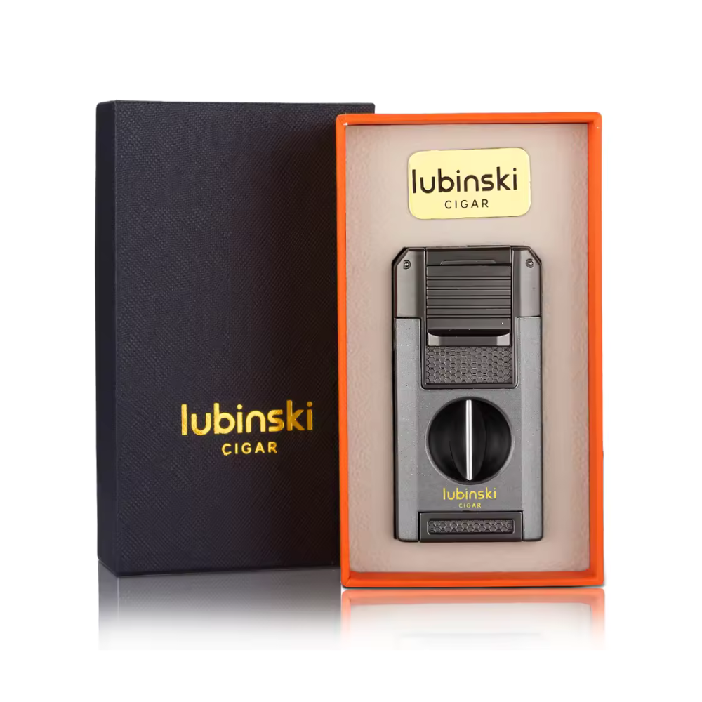 Introducing the Ultimate Cigar Lighter Set, combining the power of a dual torch lighter with a sharp V-cutter and a versatile needles punch. This all-in-one cigar accessory is designed for cigar aficionados who demand luxury, convenience, and durability in every puff.